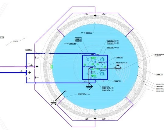 At Corporate Commons Three, the building’s striking architectural profile—defined by its angled glass facades and thoughtful integration of daylight and shading—sets a dynamic tone that extends seamlessly to the surrounding landscape. In keeping with this vision, the fountain I designed features a circular basin with monumental central sprays that serve as a bold yet harmonious focal point within the outdoor space. The fountain complements the project’s commitment to blending art, nature, and sustainability, providing a vibrant water element that energizes the plaza while reflecting the building’s modern aesthetic. Together with the preserved green spaces and indigenous plantings, the fountain helps create an engaging, inviting environment that supports both community interaction and quiet reflection.